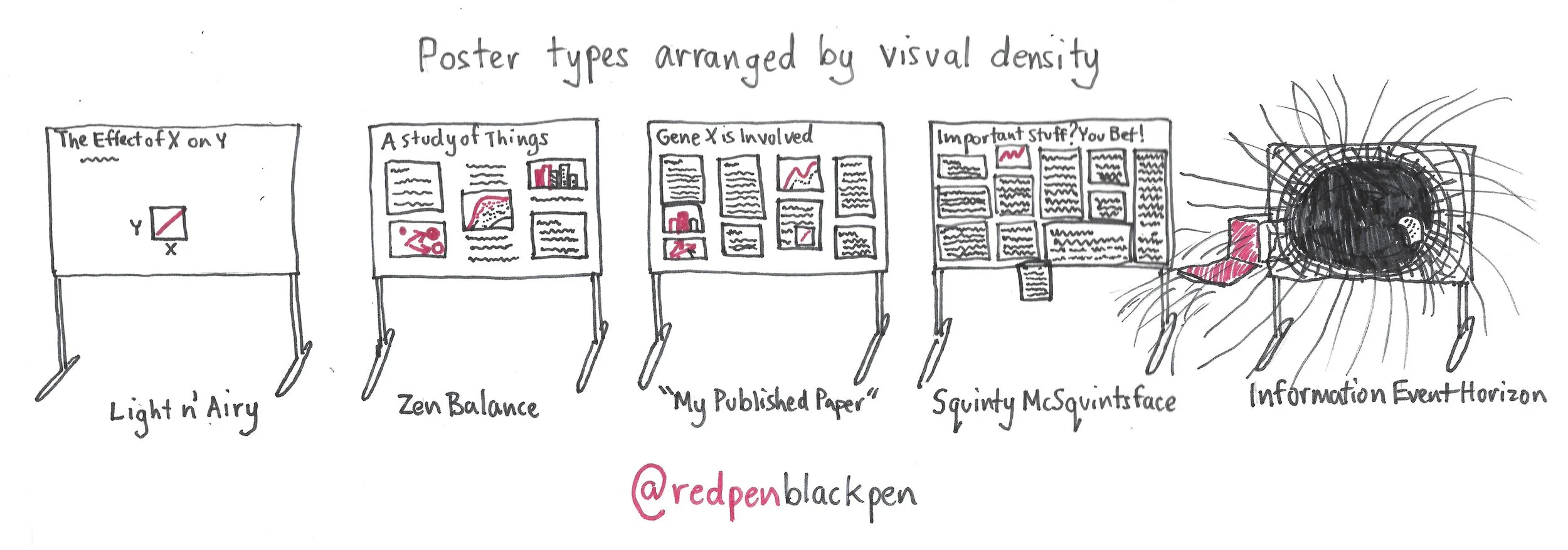 This cartoon by twitter-famous RedPen/BlackPen illustrates the different types of posters one might see at conferences.